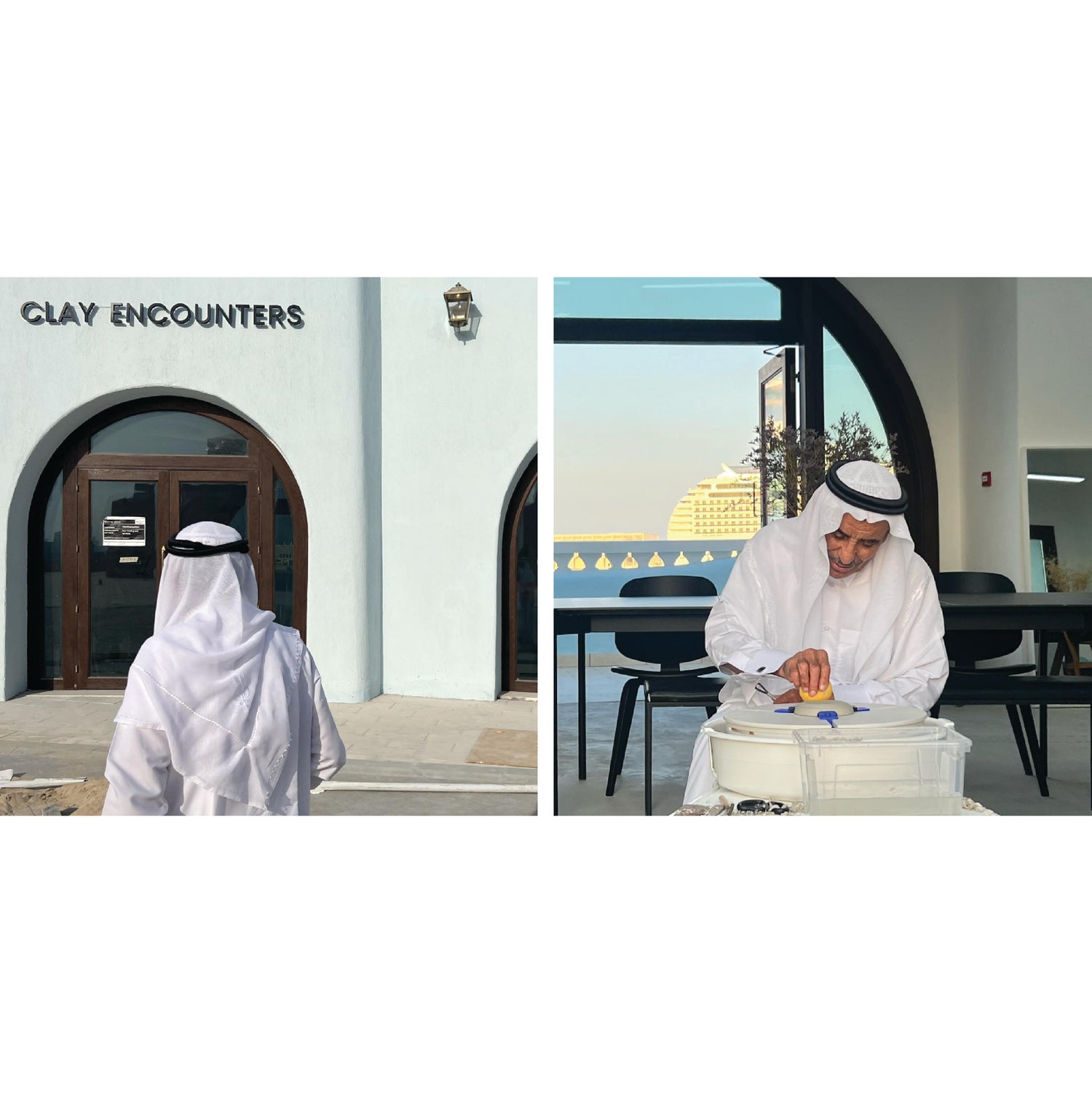 My grandpa visiting the second Clay Encounter branch, the Old Doha Port
