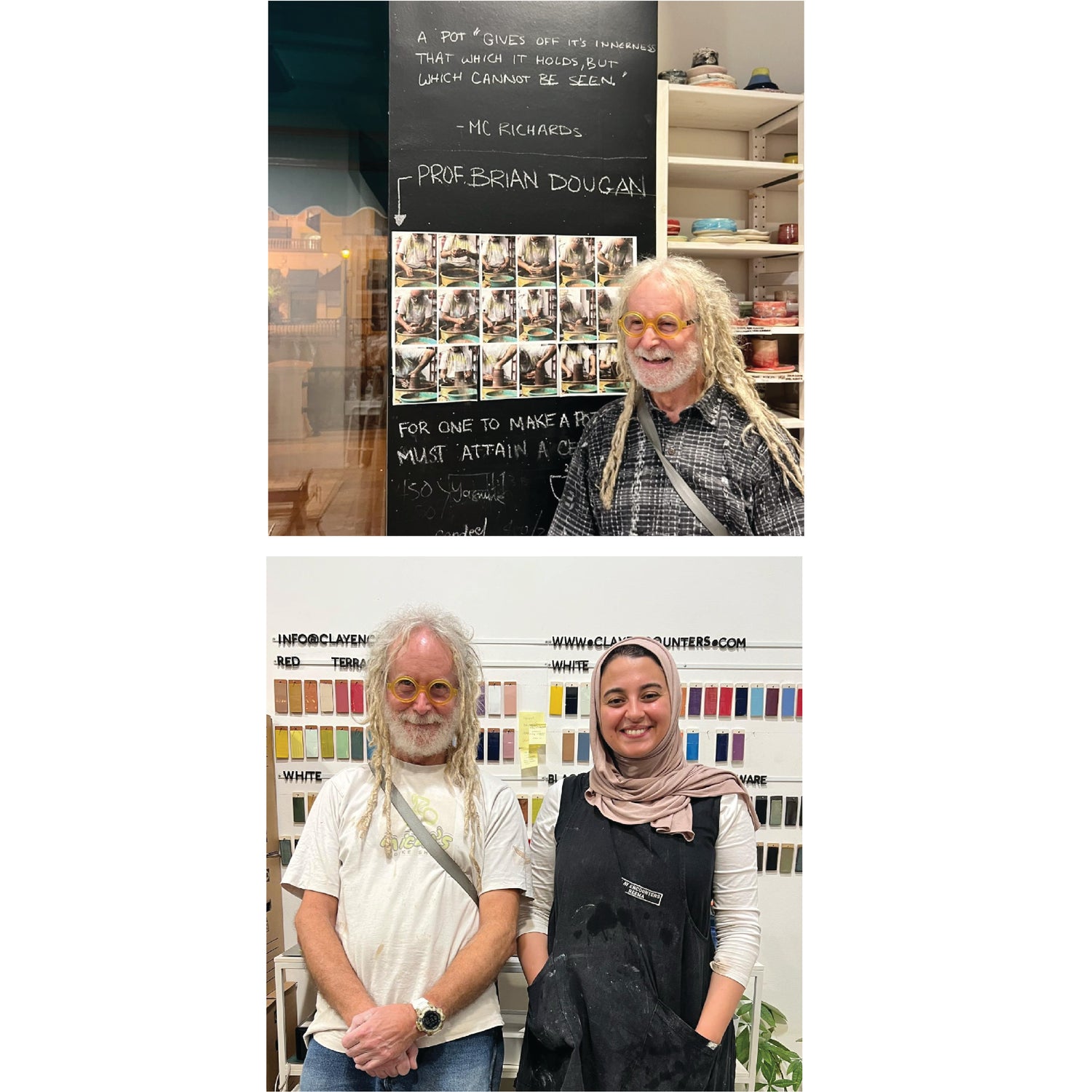 My professor in architecture school who taught me pottery and inspired me to open Clay Encounters, visits the studio and teaches his signature carving techniques, how to make cups and how to pull handles.